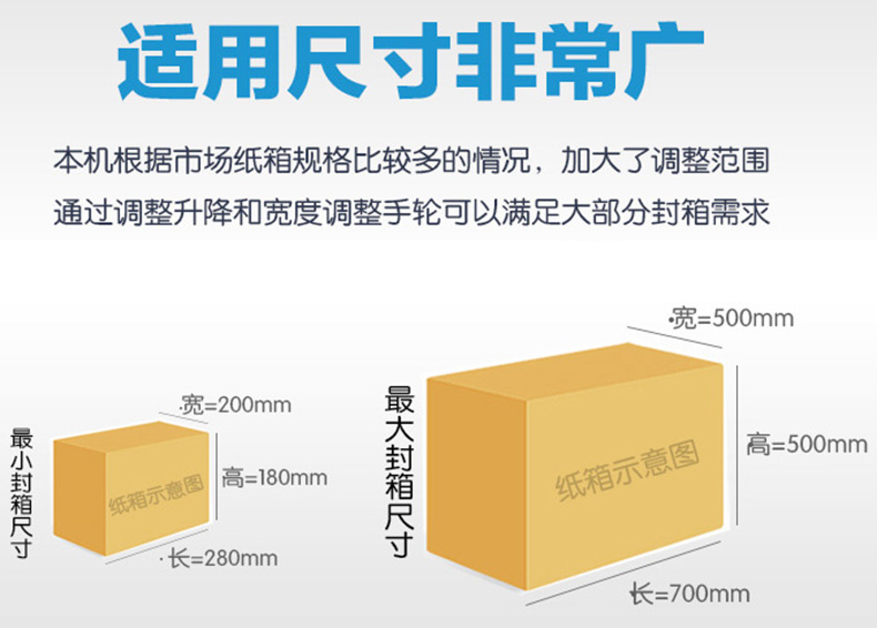 封箱尺寸: L150-∞ * W150-500 * H150-500mm